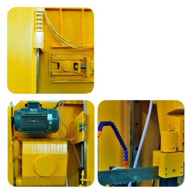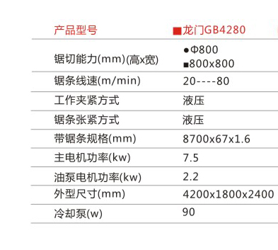 ·液壓控制鋸切進給、帶鋸條的張緊及工作夾緊。