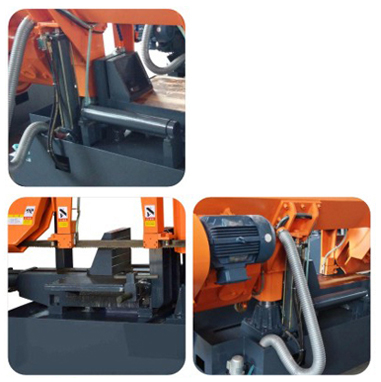 ·液壓控制鋸切進(jìn)給、帶鋸條的張緊及工作夾緊。
